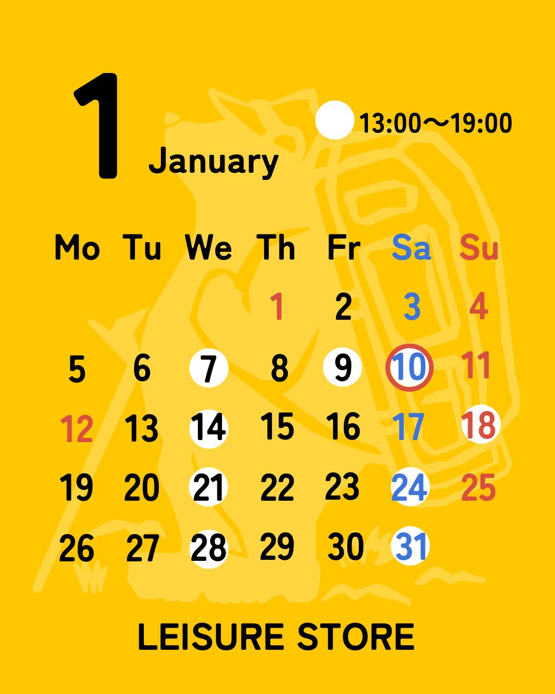 直営店LEISURE STOREの1月営業日をお知らせします!