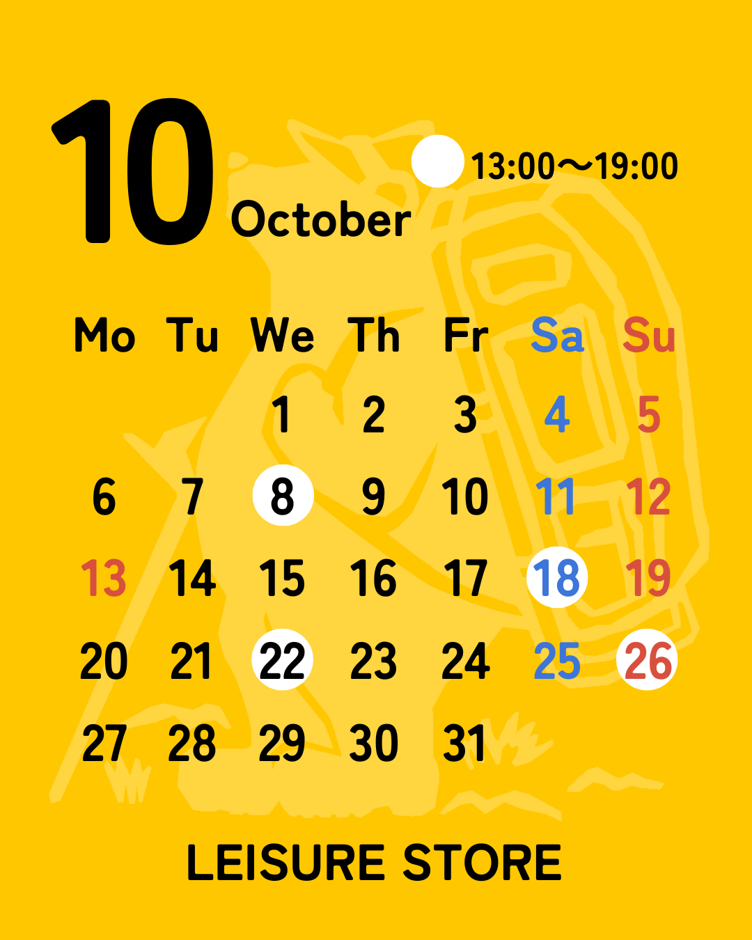 10月のLEISURE STOREの営業日をお知らせいたします✨