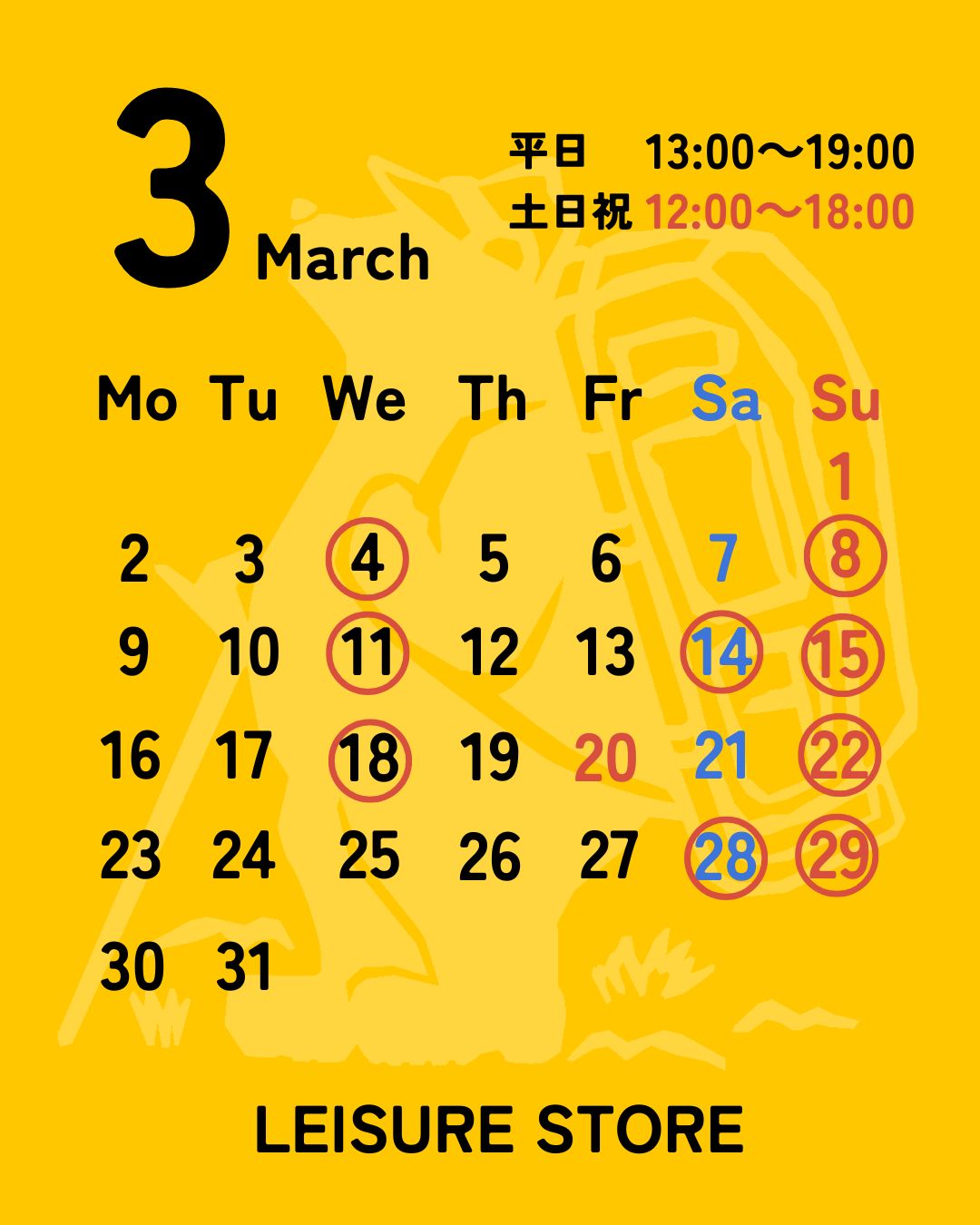 3月のLEISURE STORE営業日のお知らせ