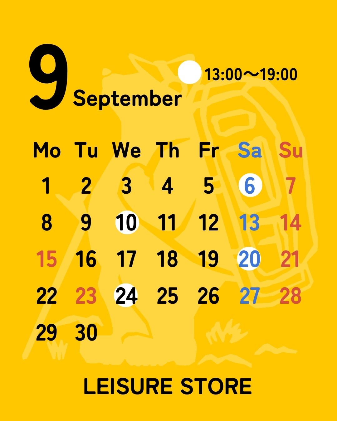 9月のLEISURE STOREの営業日をお知らせいたします✨